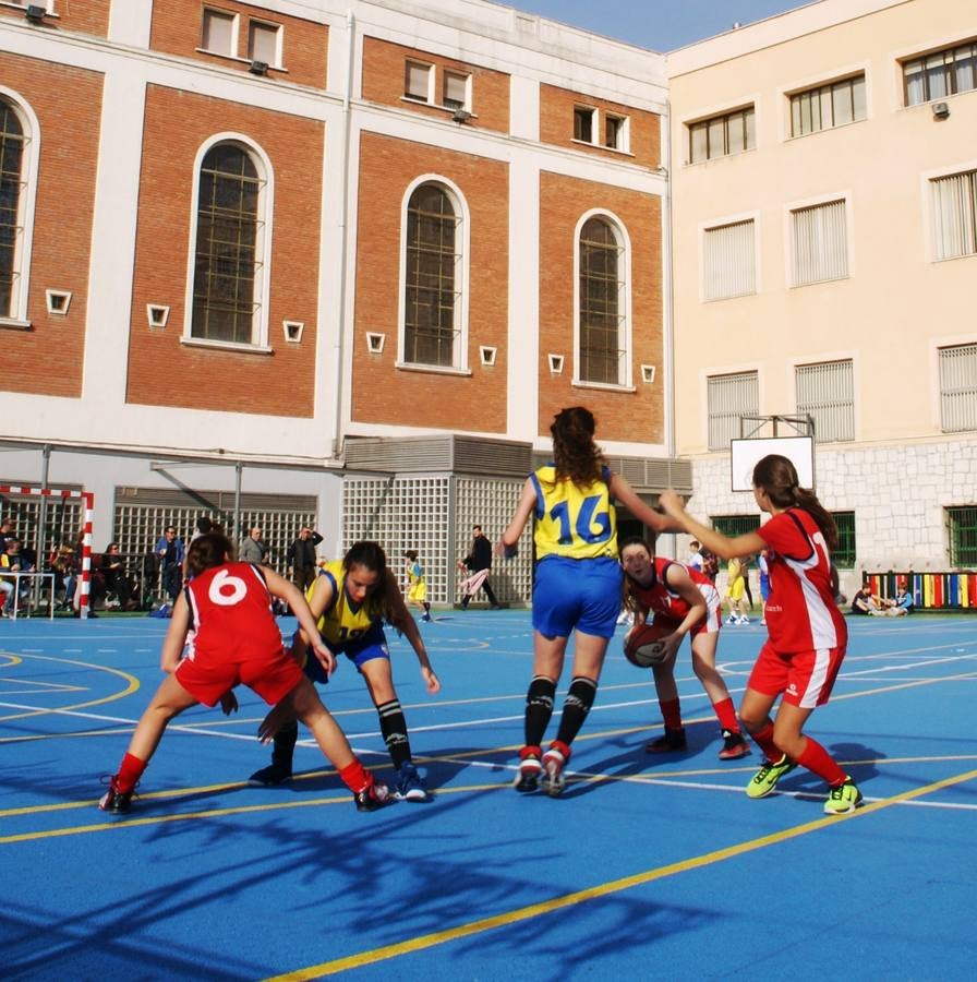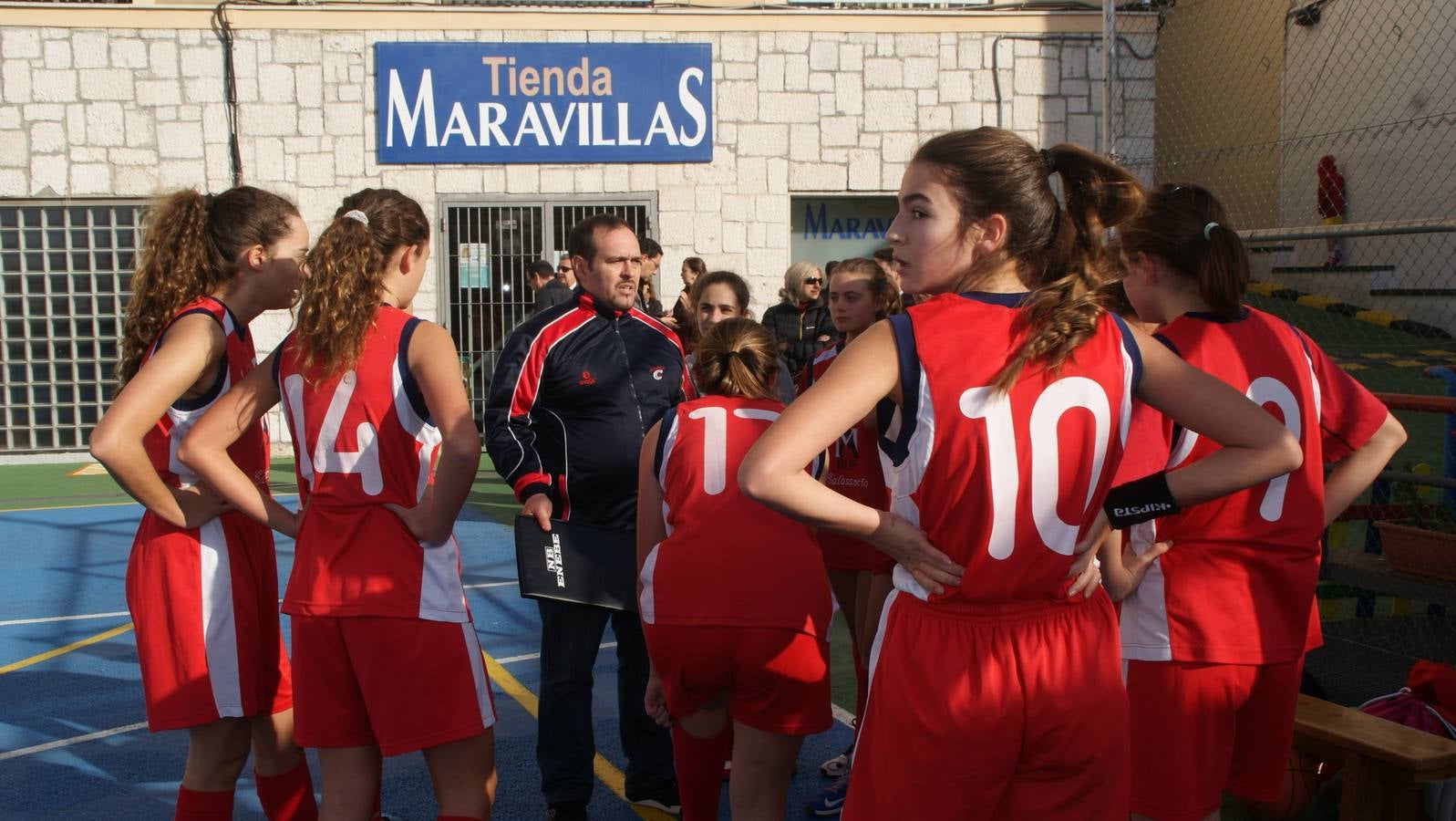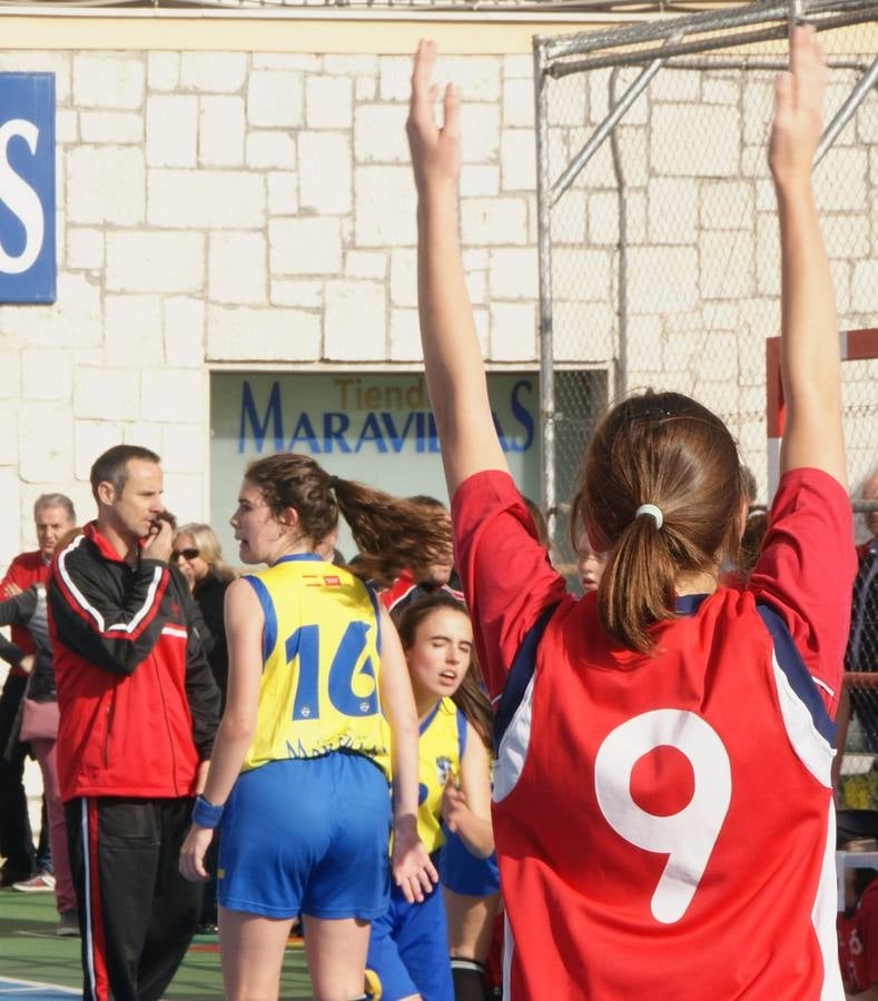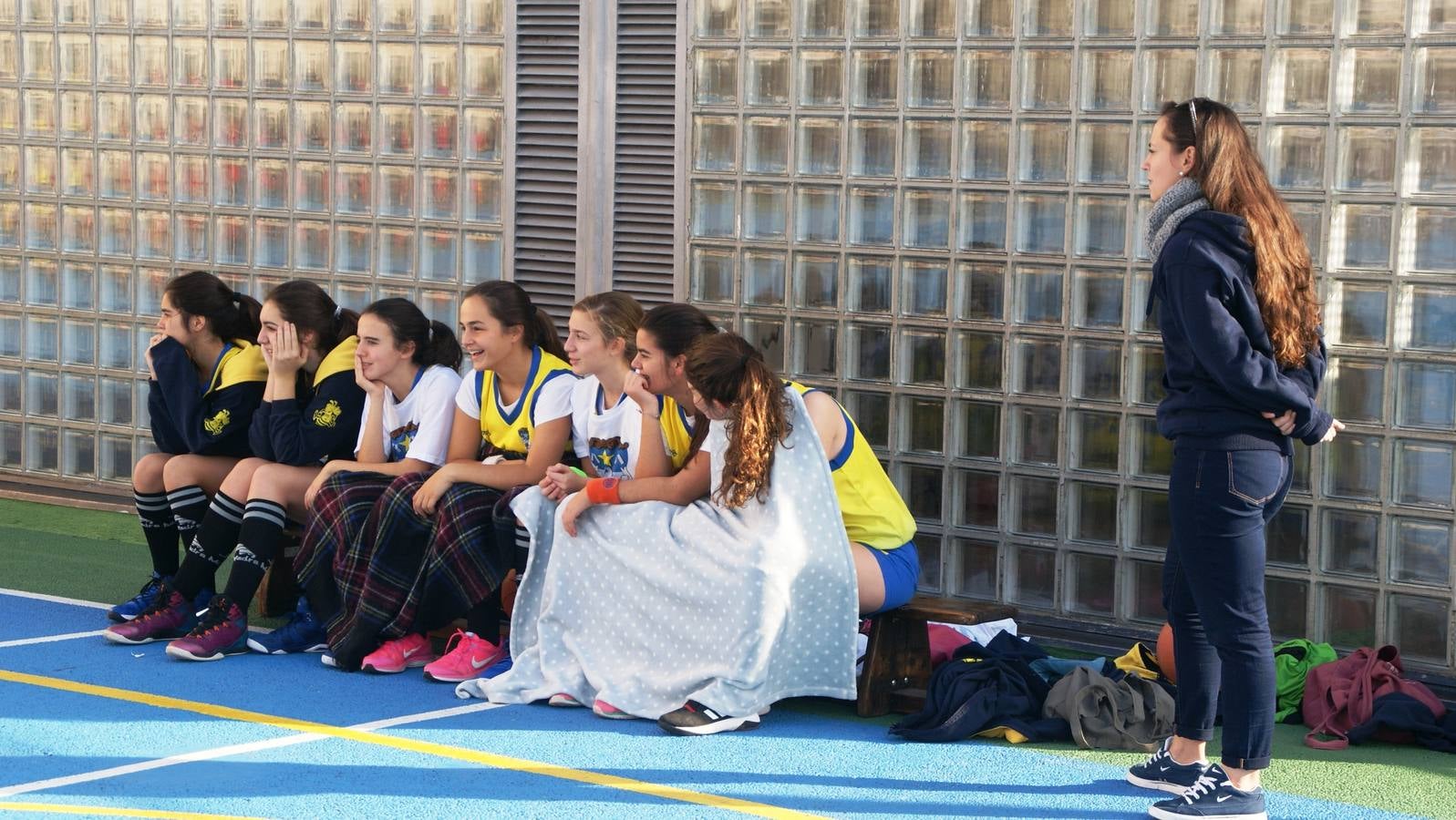 Calasancio (rojo). Arriba: Esther (5), Teresa (7), Clara (18), Laura (14), MarÃa G. (9), Paloma (4), M. Ãngel (E ). Abajo: Ana R. (10), Elena (16), MarÃa C. (15), Andrea (13), Alba (12), Ana Z. (17).