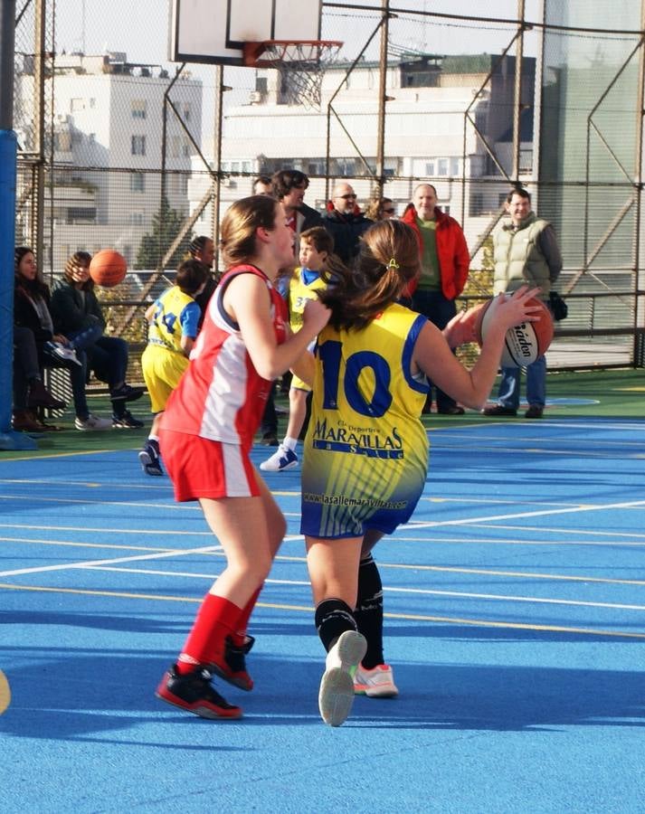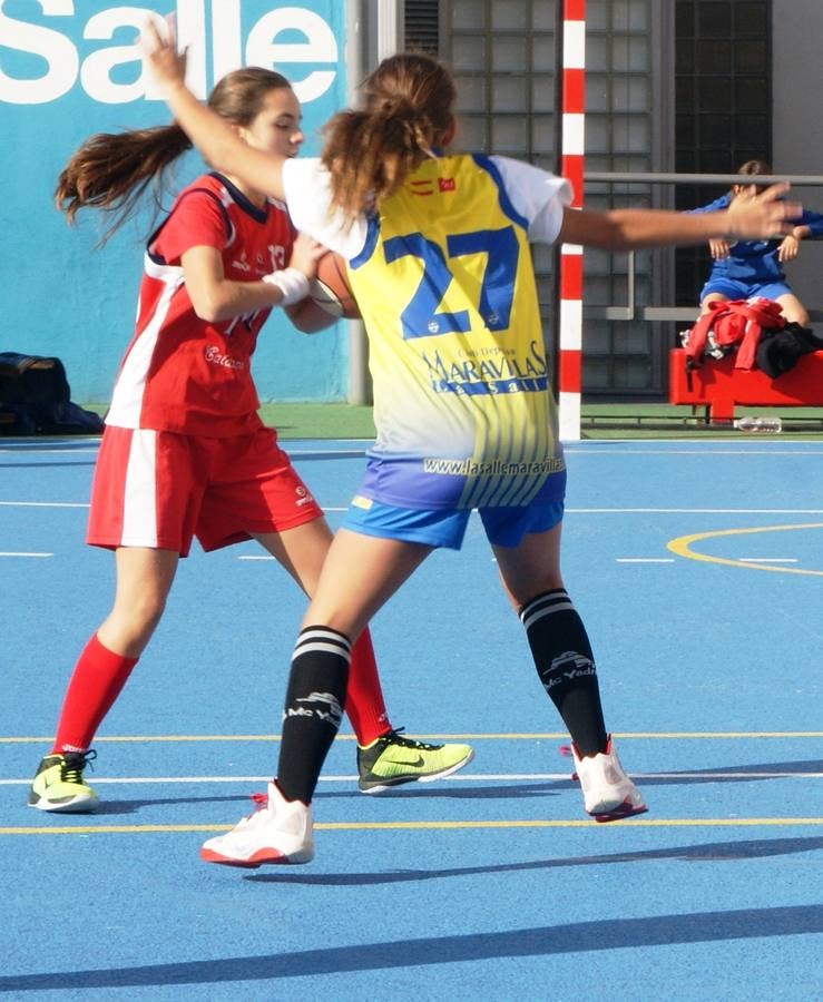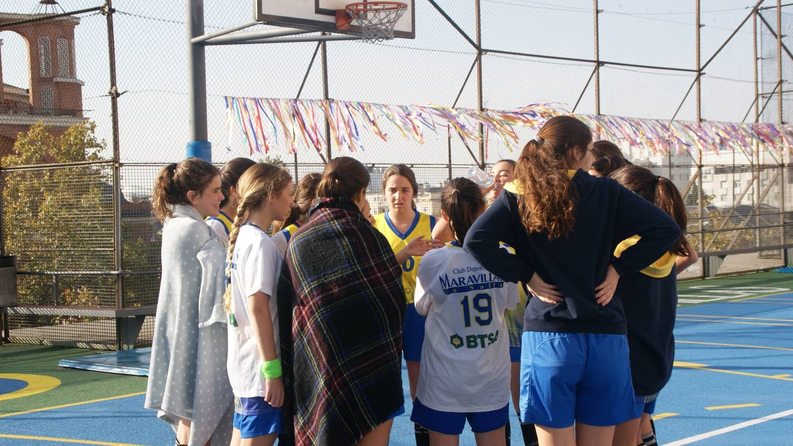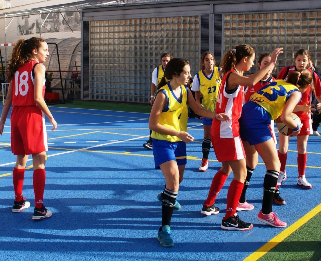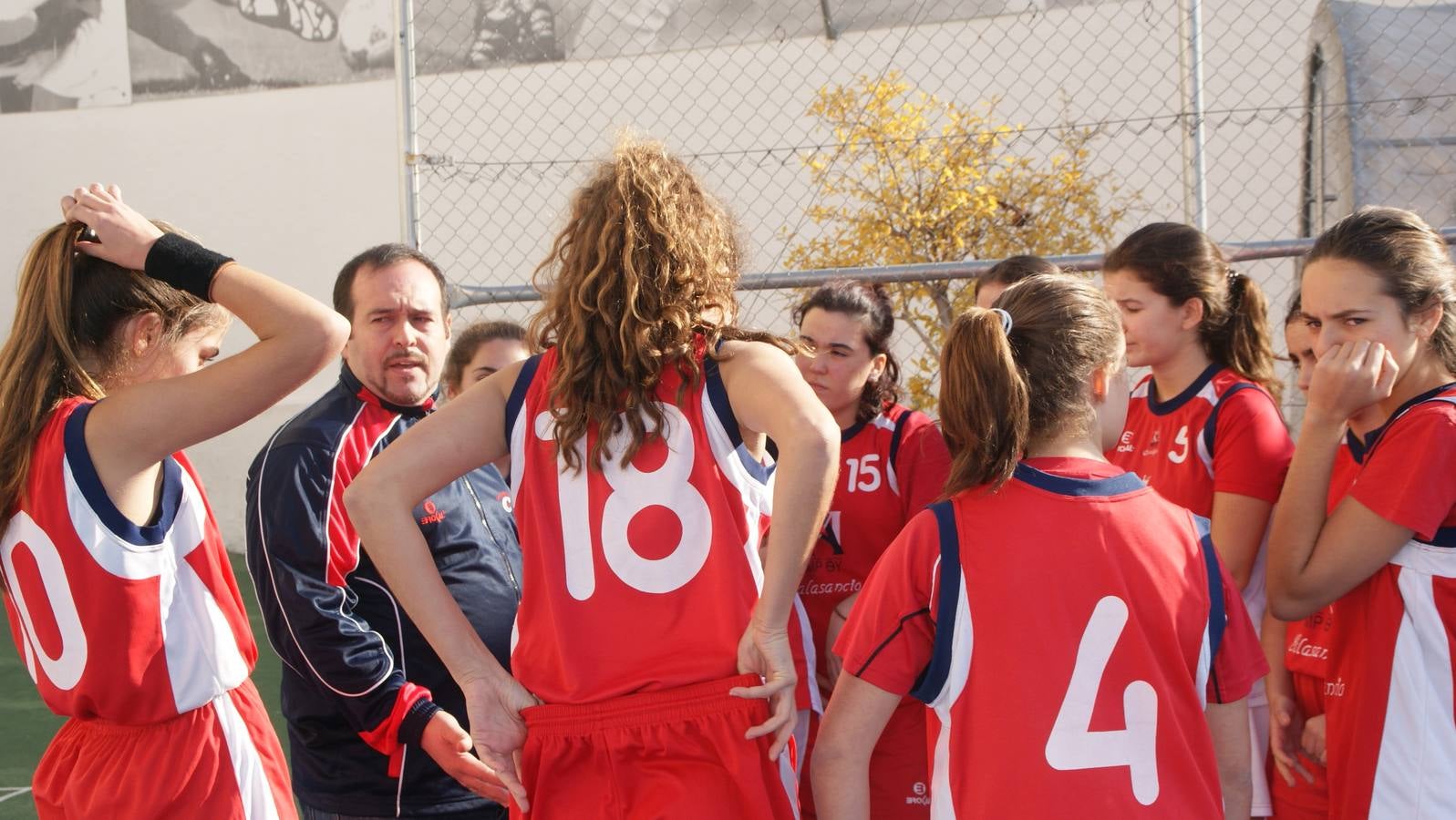 Calasancio (rojo). Arriba: Esther (5), Teresa (7), Clara (18), Laura (14), MarÃa G. (9), Paloma (4), M. Ãngel (E ). Abajo: Ana R. (10), Elena (16), MarÃa C. (15), Andrea (13), Alba (12), Ana Z. (17).