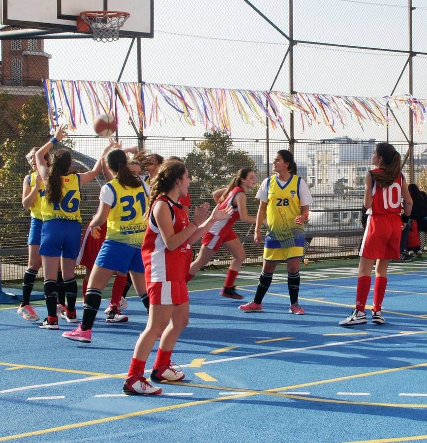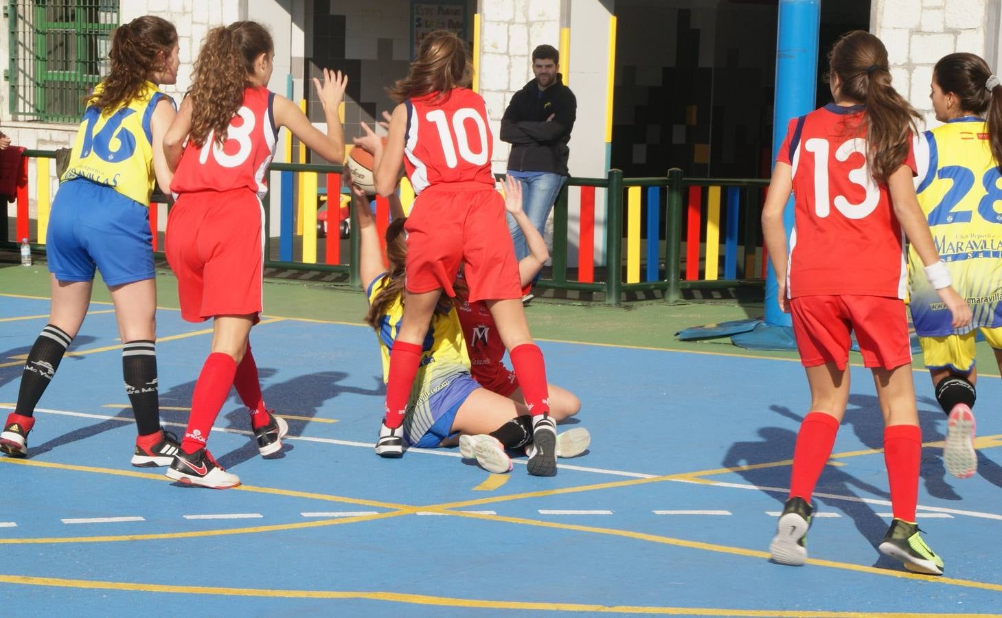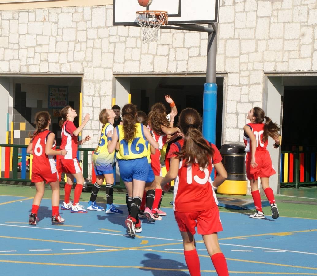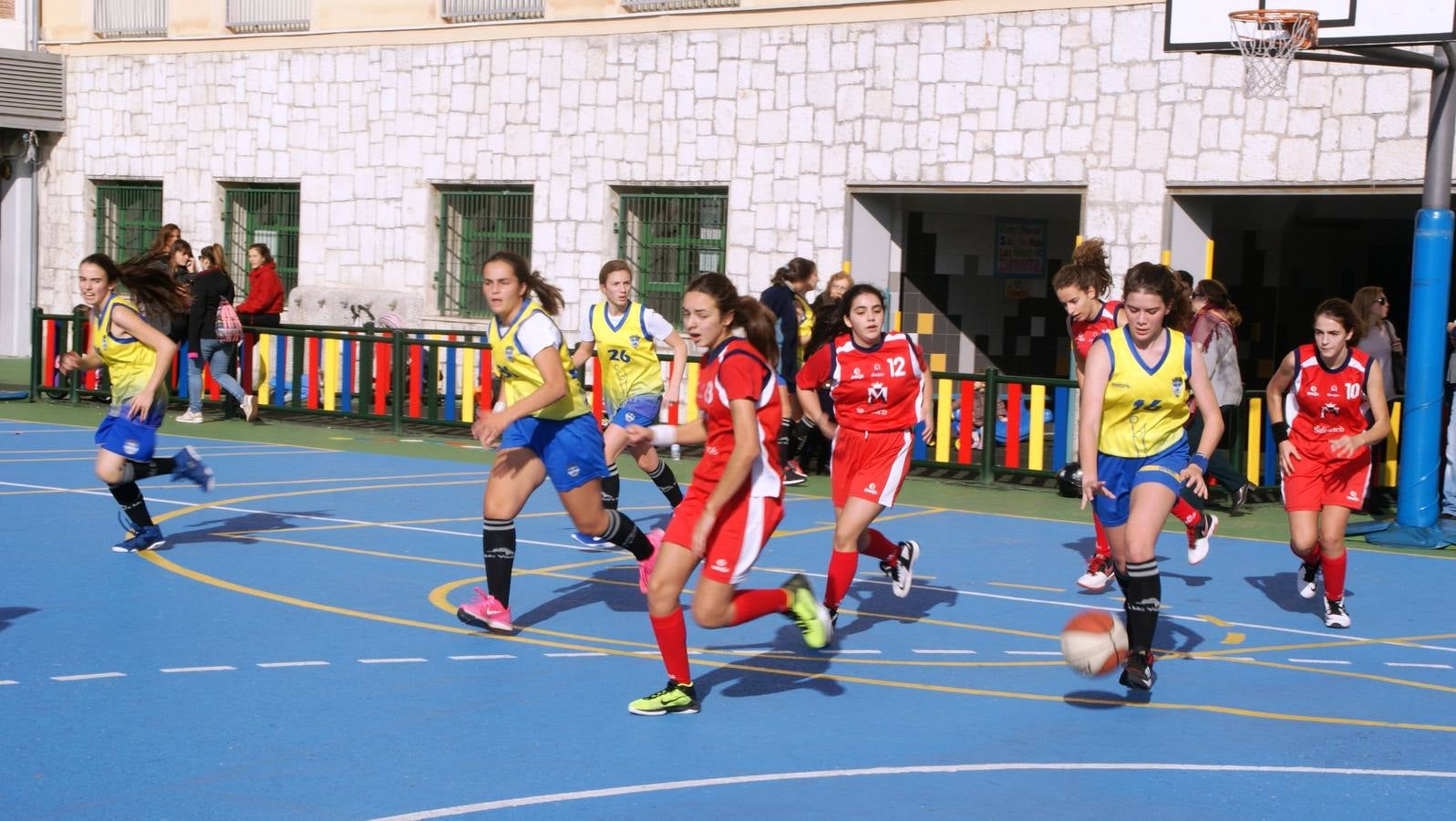 Calasancio (rojo). Arriba: Esther (5), Teresa (7), Clara (18), Laura (14), MarÃa G. (9), Paloma (4), M. Ãngel (E ). Abajo: Ana R. (10), Elena (16), MarÃa C. (15), Andrea (13), Alba (12), Ana Z. (17).