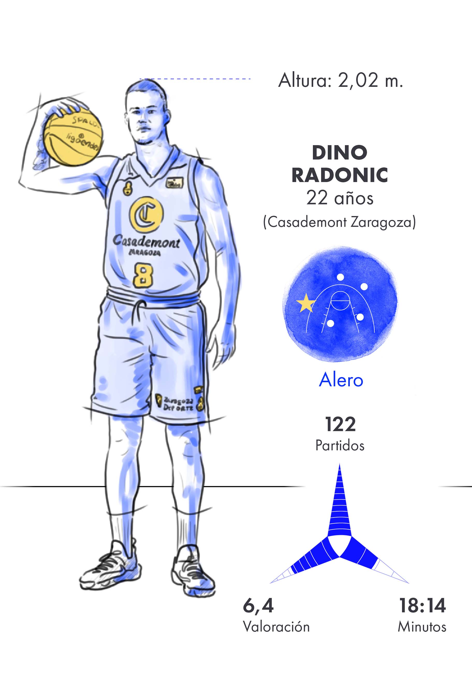 Con 22 años, el alero montenegrino del Casademont Zaragoza Dino Radoncic ya suma 112 partidos en la Liga Endesa y es el más joven entre los 50 más valorados (13,0 de media), mientras que Jaime Pradilla (20 años) sigue trabajando duro para hacerse un hueco en el Valencia Basket. Osas Ehigiator (21 años), señalado por todos como el futuro pívot de España, continuará esta temporada en el Urbas Fuenlabrada recuperándose de su lesión del tendón rotuliano de la rodilla derecha.
