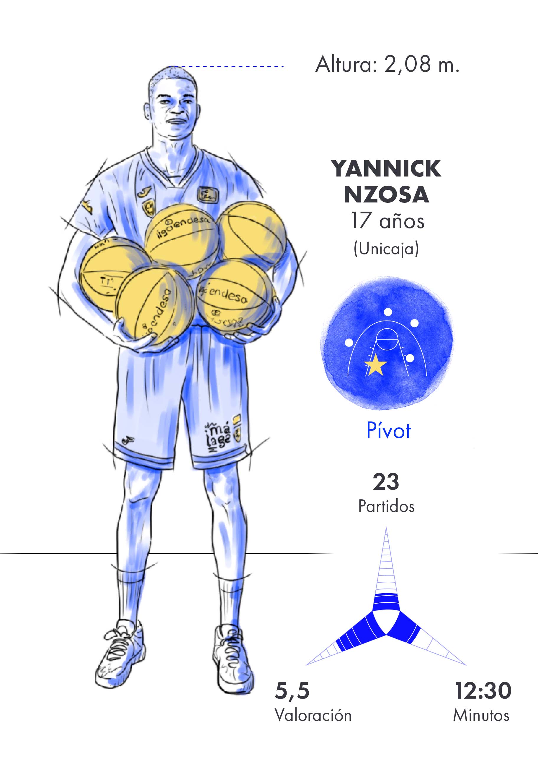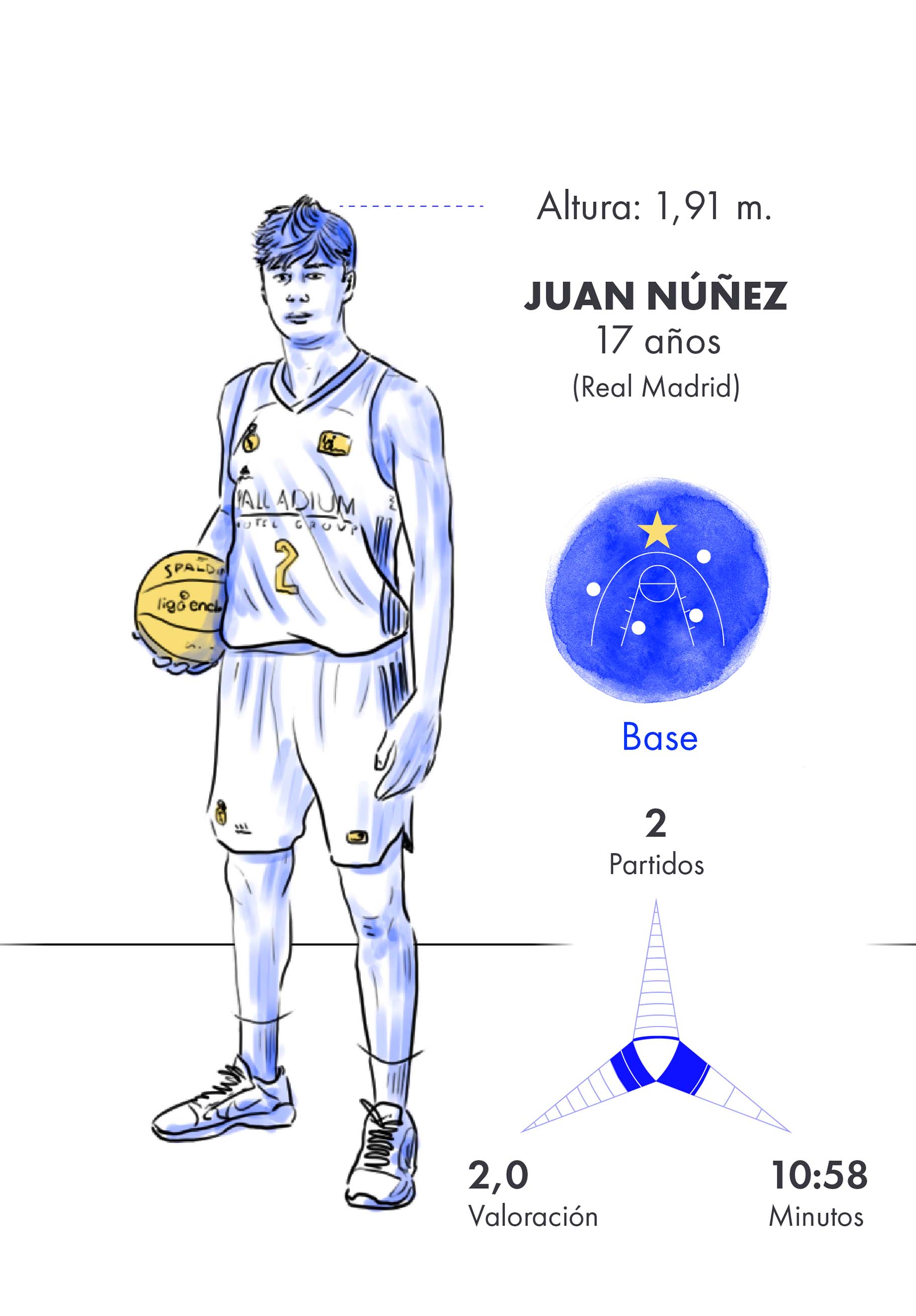 Tienen entre 17 y 22 años y son los jóvenes más prometedores del baloncesto español. Sus nombres ya copan los titulares de la prensa deportiva gracias al juego que despliegan sobre el parqué. Si al joven base Juan Núñez (17 años) ya le identifican como la perla del Real Madrid, su compañero de filas Carlos Alocén (20 años) despuntó la temporada pasada como una de las grandes sorpresas de la Liga Endesa. El congoleño Yannick Nzosa (17 años) del Unicaja batió en la pasada Liga Endesa todos los récords de precocidad en tapones; Joel Parra (21 años), del Joventut de Badalona, ha sido una de las grandes novedades de Sergio Scariolo para la Ventana de la Clasificación al Eurobasket 2022, mientras que el base-escolta lituano Rokas Jokubaitis (20 años), que aterriza esta temporada en el Barça, fue elegido el segundo mejor joven de la Euroliga 2020/21.