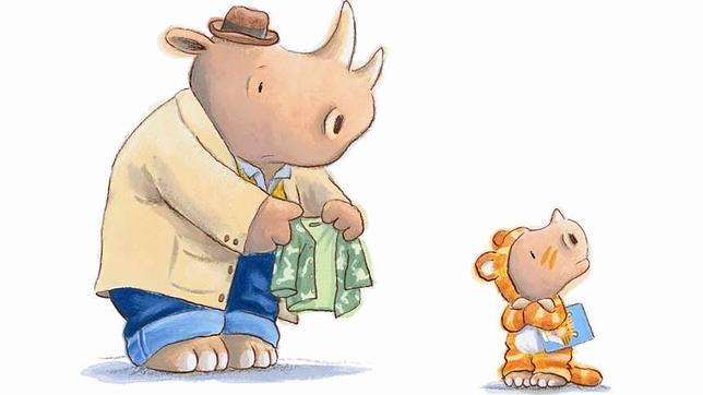 «¡Qué ricura!, ¡qué monada!, ¡qué carita tan salada!». El pequeño Rino es encantador para sus familiares, para el cartero, para todos. Hasta que, un aciago día, Rino aprende a decir «¡no!». Como en la imagen, a partir de entonces no quiere ponerse el abrigo para ir al colegio, no se quiere bañar, no quiere jugar con sus amigos...