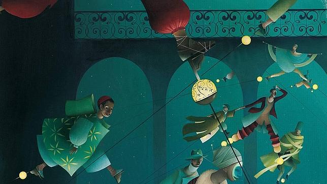 La belleza de estas páginas asombra. En formato rectangular, grande, incómodo para colocarlo en la estantería, parece que se desprende luz de algunas de las escenas que transcurren por la noche. En la ciudad de Marespuma, todos caminan con zancos sobre el agua. Leopoldo, el protagonista, tiene los zancos más altos y vive con la cabeza en las nubes, sin preocuparse de lo que sucede un poco más abajo. Al pasar las páginas aprenderá una lección.