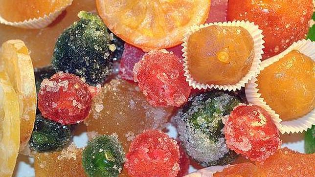 abc Se emplean para la decoración de los dulces navideños, pero también se venden como delicatessen típicos de estas fiestas. Las frutas se confitan sumergiéndolas en almíbar para que pierdan la humedad interior. Terminado ese proceso se escarchan, recubriendo la fruta con azúcar y dándole el aspecto de pequeños cristales. Naranjas, peras, cerezas, higos... Muy logradas las de La Antigua, en León.