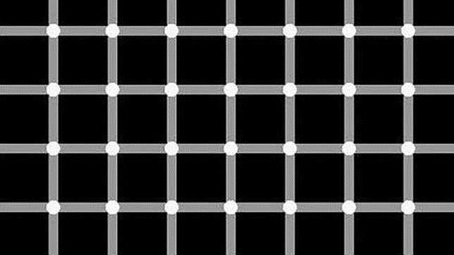 Si miras fijamente la imagen alucinarás, ¡parece que los circulitos que hay en las puntas de los cuadrados van cambiando de color, como si fuesen bombillas que se encienden y se apagan! Como ya sospecharás, no es así. De nuevo es tu mente «jugándotela», haciéndote ver algo que en realidad no está ocurriendo.