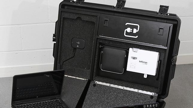 Todos los componentes de la Instant Classroom pueden cargarse de forma simultánea desde una única fuente de electricidad mientras la caja está cerrada. Tras 6 u 8 horas de carga, la Instant Classroom puede utilizarse durante un día entero en un aula sin acceso a electricidad.