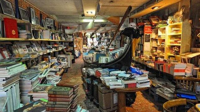 Una librería prácticamente sobre el agua puede considerarse original, singular o simplemente, un sinsentido, pero tratándose de una pequeña librería de segunda mano en Venecia, la mejor calificación será probablemente la de bella, como la ciudad que la acoge. Esta librería es de las favoritas de los libreros, aquellos que evitan las grandes y modernas dimensiones y se decantan por los pasillos estrechos repletos de obstáculos (libros), por las estanterías eternas llenas de polvo entre los que siempre hay un vendedor erudito. Acqua Alta tiene esto y mucho más: una góndola y una bañera dentro del local, objetos decorativos y de colección y muchos libros (también gatos merodeando alguna edición inhallable).