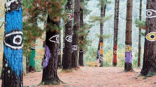 jordi chueca Usar el bosque como lienzo fue la intención del artista vizcaíno Agustín Ibarrola en este rincón de Kortezubi. Al observar determinados conjuntos de árboles desde diferentes puntos, éstos actúan como un cuadro que muestra figuras geométricas. El mensaje del pintor se alía con la imaginación del observador, que acaba viendo en este escenario natural personas, animales y paisajes llenos de color.