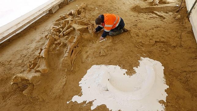 Un grupo de arqueólogos franceses ha descubierto este jueves un esqueleto casi completo de mamut en un terreno cercano a Paris. Además, junto los restos han hallado también pequeños fragmentos de herramientas de sílex, lo que podría indicar que el cuerpo fue cortado por cazadores prehistóricos