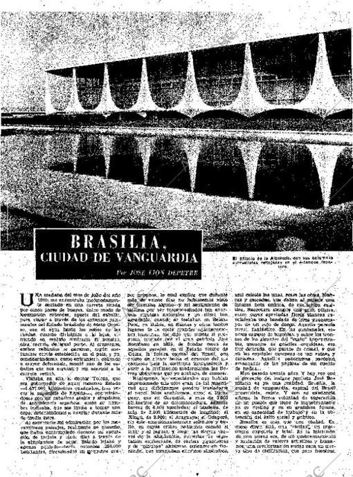+ infoTambién el exdiplomático José Lion Lepetre se mostraba entusiasmado en ABC: «Brasilia es más que una ciudad (...) Es la iniciación de una nueva era, de un quebrantamiento y mutación de valores artísticos y humanos, una revalorización audaz para, un nuevo tipo de civilización».