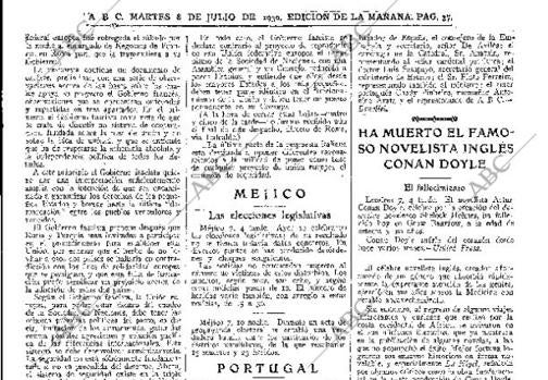 + infoEl famoso novelista inglés falleció el 7 de julio de 1930 a los 71 años. «Sufría del corazón desde hace varios meses», explicaba la nota del periódico antes de esbozar una breve semblanza del escritor.