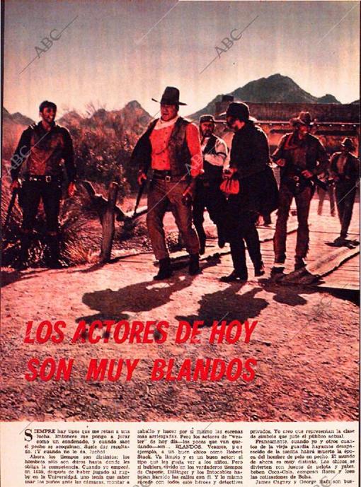 A sus 64 años, John Wayne había sacudido a cientos de cowboys y maleantes de toda ralea en más de un centenar de películas. Siempre lo había hecho él mismo, con sus propios puños, pero las cosas estaban cambiando en el mundo del cine. «Los actores de hoy son muy blandos», aseguró el rudo actor de metro noventa y tres en un artículo que escribió en 1971 y que ABC publicó en exclusiva en España. El hombre más temido del Oeste estaba convencido de que cuando él desapareciera habría muerto «la época del hombre de pelo en pecho».