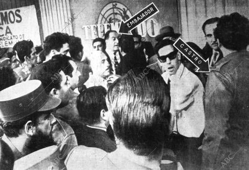 + infoCastro, «claramente enojado», según la crónica, preguntó a Lojendio, con voz contenida, si tenía «permiso del jefe del Gobierno para hablar» y el embajador replicó que «no había pedido permiso porque había sido ofendido». Mientras, policías, guardaespaldas de Castro, periodistas y operarios de la televisión rodearon al embajador español.