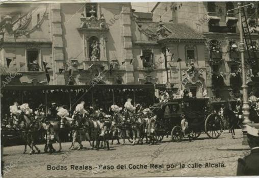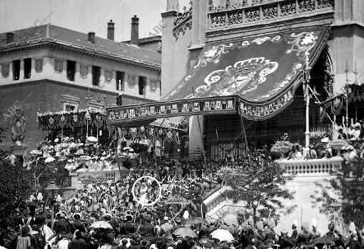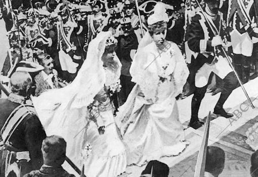 + infoEl 31 de mayo amanece despejado y luminoso. Los fotógrafos preparan sus placas con cuidado, deseando que dure la luz todo lo posible. A las 9.30 de la mañana parte de Palacio la comitiva y a las 10.40 Alfonso XIII entra en los Jerónimos. Todo marcha según lo previsto.