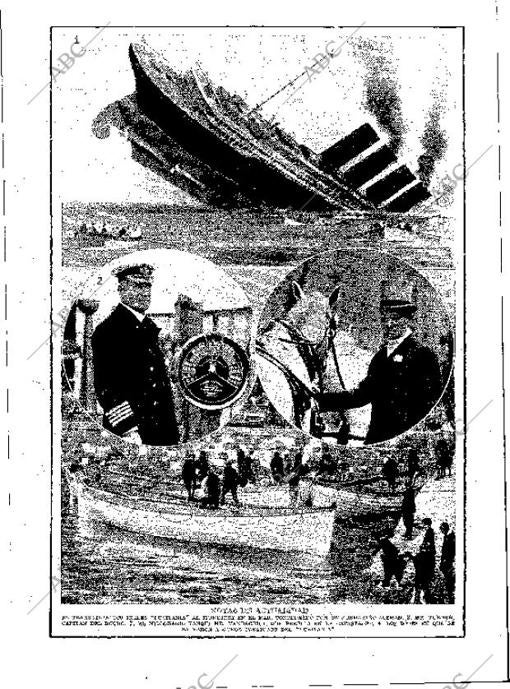 Un despacho de «Le Figaro» publicado por ABC describía cómo «se lanzó en busca de mujeres y niños; recorrió el buque de popa a proa muchas veces y sacando en brazos a los niños de los camarotes iba a depositarlos en las canoas; alentando a las mujeres, que corrían alocadas por el buque, e infundiéndoles valor, las llevaba del brazo hasta los botes y volvía a meterse por los pasillos, animando y tranquilizando a todo el mundo».