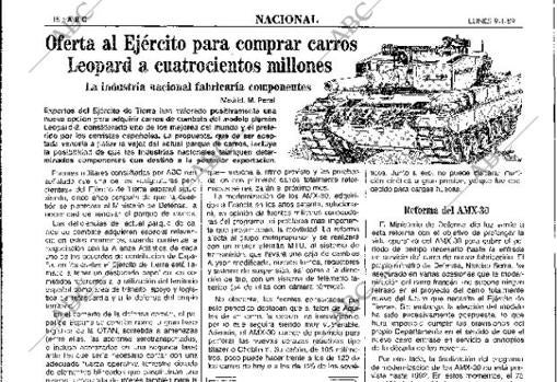+ infoLa empresa alemana que dio un paso al frente fue Krauss-Maffei, que por entonces producía el Leopard 2 –«el carro de combate más avanzado que existe debido a sus especiales características técnicas», según ABC–. Las bondades del blindado convirtieron a la compañía en la deseada por el Ministerio de Defensa. «Un representante de esta empresa, el profesor Timmerman, se encuentra en España para mantener conversaciones con los representantes del Ejército. Entrevistas en las que se tratará, preferentemente, sobre el futuro carro de combate español y su posible vinculación tecnológica con el modelo Leopard», explicaba este diario en 1984.