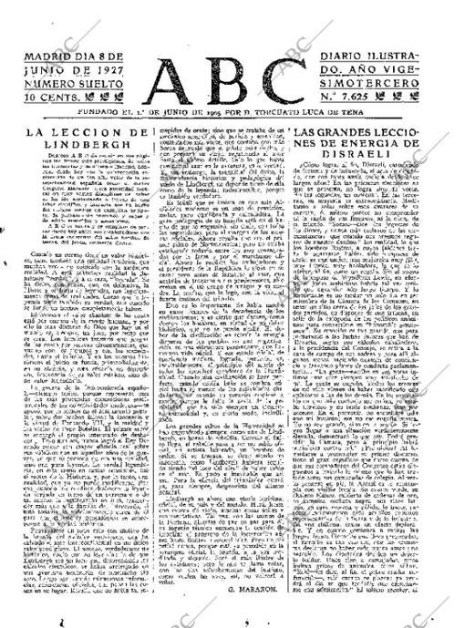+ infoAquel día, en París, comenzó la leyenda. «Una nueva y gloriosa hazaña, hija del valor y la inteligencia del hombre, registra hoy la Aviación mundial con el maravilloso vuelo realizado por el norteamericano Lindbergh. Un nuevo triunfo para la civilización y el progreso, que ha de llenar de orgullo a la Humanidad toda, puesto que a ella pertenecen por entero los que, por su pericia y su bravuera, realizan actos como éste que registramos, con satisfacción extraordinaria», subrayaba ABC.