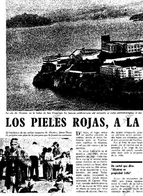 + infoAsí lo relató «Blanco y negro» en un extenso reportaje publicado en noviembre de 1969, al que seguirían otros artículos sobre esta sonora protesta que protagonizaron los indios. Estados Unidos descubrió que no solo tenía por aquel entonces un problema negro, sino también uno rojo. De los alrededor de 600.000 indios que vivían entonces, apenas 5.000 cursaban estudios y la edad media de vida no sobrepasaba los 44 años, frente a los 60 del hombre blanco. Enclaustrados en sus áridas reservas, sin incentivos de trabajo y con deficientes escuelas y pésimos servicios sanitarios, subsistían casi en la miseria.