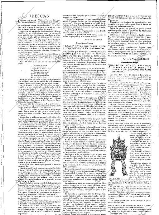 Mariano de Cavia (Zaragoza, 1855-Madrid 1920) comenzó a colaborar en ABC en febrero de 1903, con una sección a la que llamó «Ideícas», claro guiño a sus orígenes, con un artículo sobre el maestro Caballero, autor de zarzuelas, titulado «Las bodas de oro del maestro Caballero» . Volvió a publicar en el mes de marzo otro sobre el trasnocheo, «Licencias para trasnochar», y ya no volvió a escribir más. En abril de ese año, Ángel María Castell (Aemece) comentó en un artículo que aunque se insistía desde ABC para que siguiese con la colaboración, éste no quiso. Era un periodista consagrado y ABC una aventura. Posiblemente prefirió lo seguro.