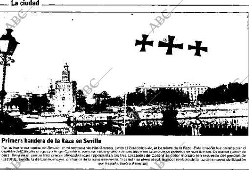 La Bandera de la Raza Hispánica fue izada por primera vez el jueves 12 de octubre de 1932, en la Plaza de la Independencia de Montevideo, y fue oficialmente adoptada por todos los estados de Hispanoamérica como bandera representativa en el marco de la VII Conferencia Panamericana reunida en diciembre de 1933. ABC informaba ya en mayo de que el uso de la bandera se iba extendiendo por Hispanoamérica:
