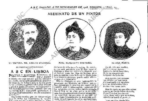 El pintor Adolphe Steinheil y su madre política, la señora viuda de Japy, amanecieron asesinados el 31 de mayo de 1908 en su casa del callejón Roussin, nº 6 bis, en París. Marguerite Steinheil, la esposa del pintor, yacía en su lecho, fuertemente atada. Cuando el criado de la familia, Remy Couillard, entró en la habitación de madame Steinheil y se dio cuenta de la tragedia, corrió a pedir socorro, y en pocos minutos la casa se vio invadida de policías y vecinos.