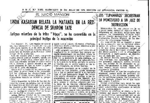 A lo largo del proceso, Bugliosi no se mordió la lengua y calificó con una infinidad de espeluznantes adjetivos los siete asesinatos perpetrados por la 'Familia' un año antes. Entre ellos, el de la actriz Sharon Tate, embarazada del director de cine Roman Polanski, y Leno Labianca. «Son, posiblemente, los más brutales, salvajes, asesinatos de pesadilla, registrados en los anales del crimen. Estoy excluyendo, por supuesto, las atrocidades de la guerra», afirmó el fiscal en declaraciones recogidas también por ABC ese mismo julio. A partir de entonces, las referencias al abogado y a los asesinos fueron constantes. Y no era para menos ya que, como explicó este diario, el mundo entero había quedado estremecido por las barbaridades perpetradas por aquella 'tribu'.