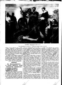 + infoEn un texto cargado de emoción y de épica, el cronista de ABC hizo un breve repaso al transcurso de la batalla, con Juan de Padilla derribando de su caballo a Pedro de Bazán y a otros hombres fieles al Emperador, y describió a pie lo que fue encontrando en Villalar de los Comuneros, cuya «gloria es de panteón, gloria de epitafio de una causa grande y justa, que debió triunfar y que no venció, aun contando con la razón y con la fuerza, por la detección de los nobles, por la escasa unión del estado llano y, ante todo y sobre todo, por falta de buenos elementos directores».