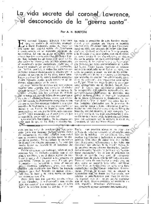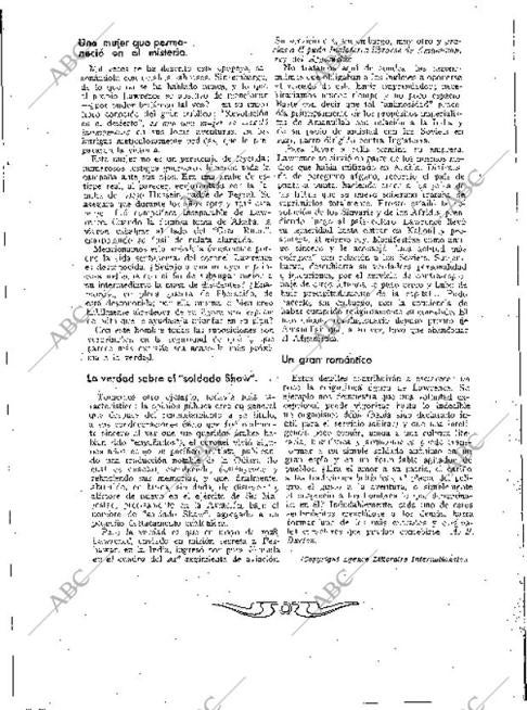 + infoPese a su excepcional biografía, en la que destacaba la toma del puerto de Aqaba o la célebre entrada en Damasco, al escritor madrileño le interesaba más la vida de Lawrence cuando era solo exLawrence, «cuando comienza una existencia a lo Matías Pascal, que me parece el punto ininsistido, más interesante y conmovedor y noble de este Rey sin corona, poeta de aventureros».
