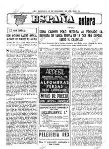 + infoEn todo caso, durante el tiempo que permaneció en su poder (ya fuera en su dormitorio, ya fuera en el relicario), Franco solía ceder la mano de Santa Teresa a la Iglesia varias veces a lo largo del año para que fuera venerada en procesiones y misas. Una de esas ocasiones quedó recogida en 1939 bajo el titular «Reliquia de Santa Teresa que figurará en la procesión del Carmen». En la misma, se especificaba que «la esposa del Generalísimo» había entregado «a las Carmelitas de Burgos» el objeto para que «figure en la procesión de Nuestra Señora del Carmen, que saldrá el domingo por las calles de la ciudad». Aunque, eso sí, siempre era devuelta de nuevo a El Pardo tras el evento.