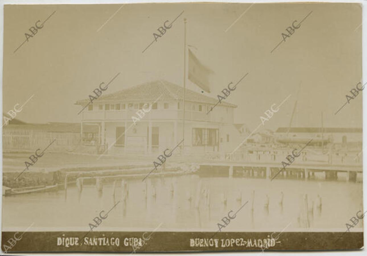 La escuadra del almirante Cervera sucumbe ante la escuadra norteamericana del almirante Sampson. En la imagen, el crucero «Vizcaya», la supeestructura y cubierta alta, con el palo mayor derrumbado