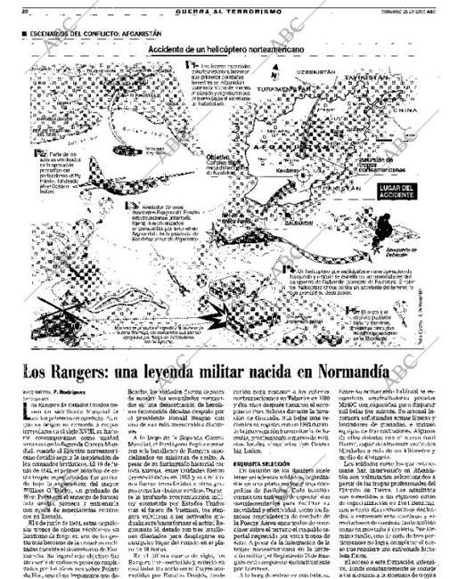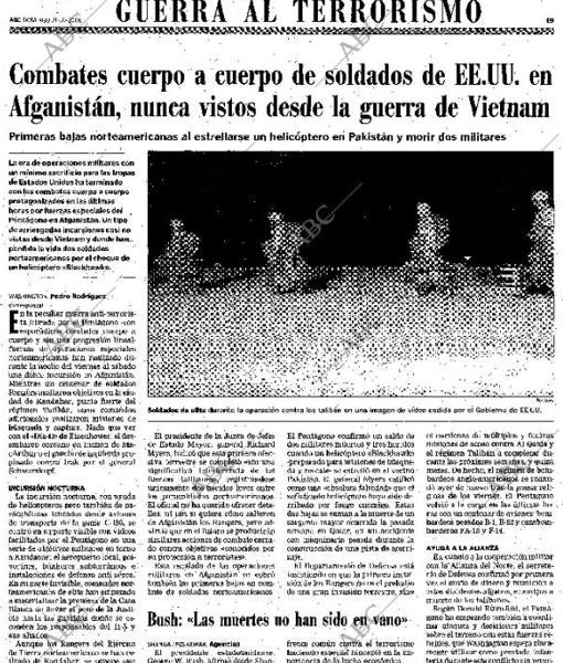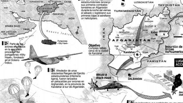 Entre ellas, las del mismo ABC, donde el corresponsal en Washington, Pedro Rodríguez, informó de forma pormenorizada del golpe que habían dado los soldados norteamericanos mejor entrenados a los talibanes: «En la peculiar guerra anti-terrorista librada por el Pentágono –con esporádicos combates cuerpo a cuerpo y sin una progresión lineal– fuerzas de operaciones especiales norteamericanas han realizado durante la noche del viernes al sábado una doble incursión en Afganistán». El periodista se refería a los Rangers del 75º Regimiento y a las mitificadas Delta Force. Una y otra, entre las unidades más letales del Ejército de los Estados Unidos de América.