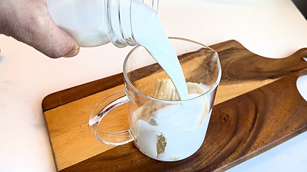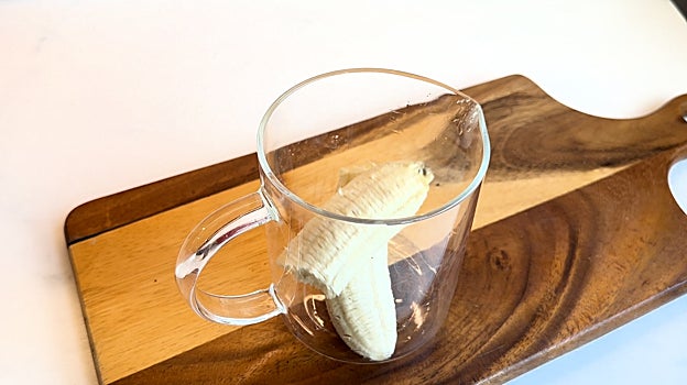 Añadimos un plátano en un vaso para batir.