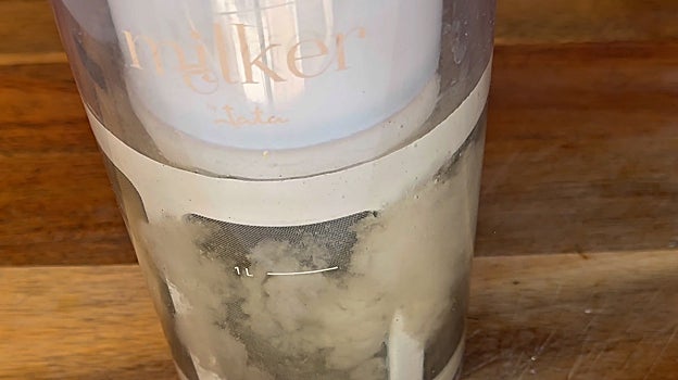 Para triturar bien utilizaremos el milker, que es especial para hacer leche vegetal pero se puede hacer también con un colador. Una vez la tenemos la podemos servir con un poco de hielo o con un café. ¡Y a disfrutar!