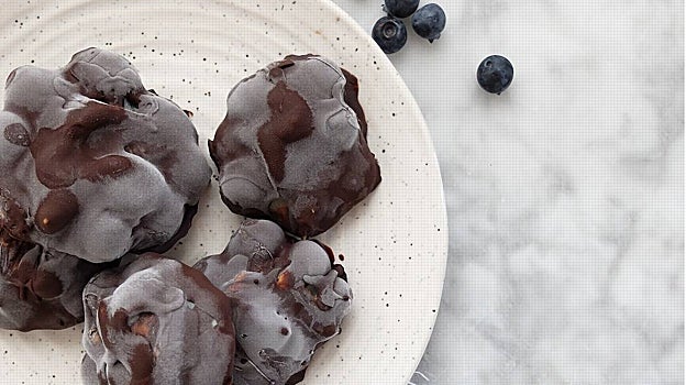 -Si te encanta el chocolate y acabas bañando tu snack de yogur y arándanos con chocolate, que sea 85% y derrítelo con una cantidad suficiente de aceite de coco de forma que la cobertura sea muy líquida y podamos hacer una capa exterior muy ligera y crujiente.