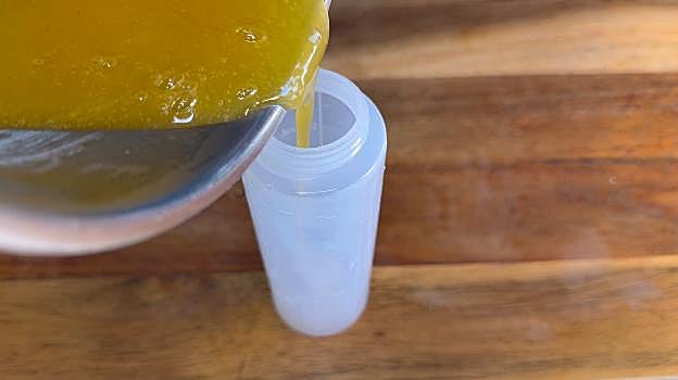 Mezclamos y lo dejamos en un biberón para acabar el plato.