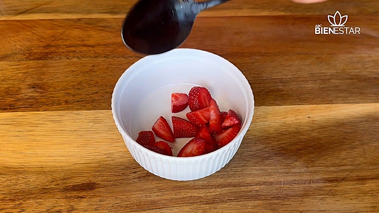 La ponemos sobre las fresas y procuramos que queden totalmente cubiertas.