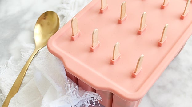 Colocamos la tapa sobre el molde para evitar la formación de cristales, introducimos los palitos de madera y metemos todo en el congelador hasta que el helado esté firme (unas 6 horas). Para desmoldar los polos, lo mejor es ponerlo todo boca abajo y pasar un poco de agua tibia por encima. Si usamos un molde de silicona, estos son fácilmente desmoldables si sujetamos el palito de madera, realizamos un ligero movimiento para despegar el helado de los laterales y a continuación presionamos el fondo de cada envase hacia arriba para retirar el helado.