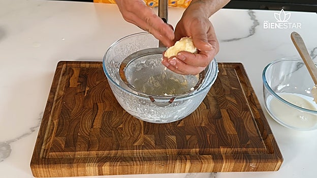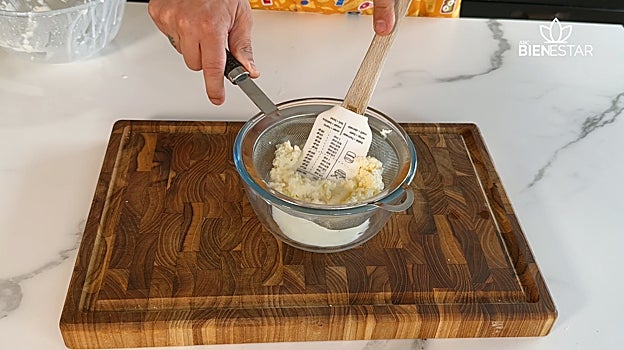Cuando está escurrida, apretamos bien con la manos.
