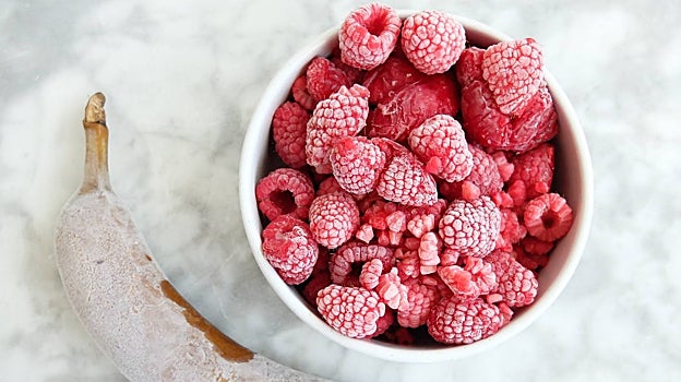 Podemos reemplazar las frambuesas por una combinación de frutos rojos congelados u otro fruto rojo que nos guste como arándanos o moras.