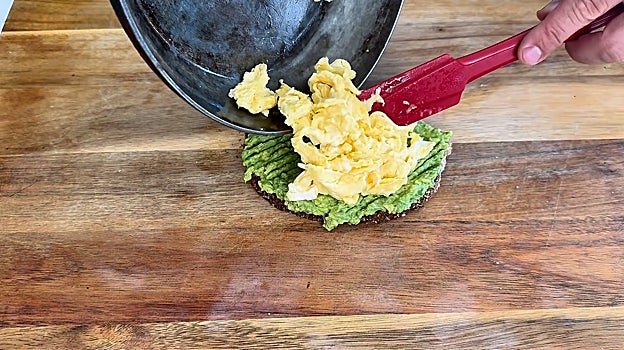 Tosta de huevos revueltos con aguacate aliñado: cómo preparar el desayuno perfecto