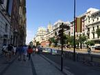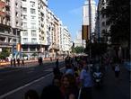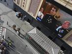 Los Reyes acaban de pasar por Gran Vía. Van escoltados por la guardia motorizada y el trayecto está siendo flanqueado con fuertes medidas de seguridad. (Foto: Matias Nieto)