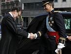 Tal y como marca el nuevo portocolo, después de recibir la faja, Felipe VI ha saludado a su familia, empezando por la Reina Letizia, sus hijas, su madre, su hermana la Infanta Elena y el hijo mayor de ésta, Felipe Juan Froilán. La infanta Elena ha hecho una reverencia al nuevo Rey, así como también el nieto mayor de los Reyes le ha mostrado respeto con una inclinación de cabeza.