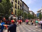 13.31: jaime g. mora«Banderas a un euro. Me quedan tres». No para de venir gente por la calle Carretas desde la Plaza de Oriente.