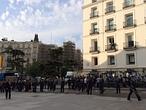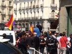 12.30: jaime G. MORAAlgunos manifestantes (unos 300-400 manifestantes) se enfrentan con peatones que ondean la bandera española. Ya están a la altura de la plaza Jacinto benavente y parece que los llevan a Tirso de Molina.