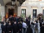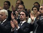 Mientras, en el interior del Congreso, los tres expresidentes del Gobierno que están charlaron distendidamente antes de la proclamación del nuevo rey Felipe VI. Tanto Felipe González como José María Aznar y José Luis Rodríguez Zapatero tienen un sitio reservado en primera fila de la tribuna de invitados para presenciar el acto oficial de proclamación del nuevo.