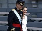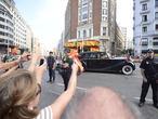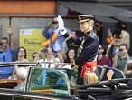 Así ha sido el primer paseo de los nuevos Reyes en un Madrid entregado. El trayecto entre el Congreso de los Diputados y el Palacio Real se ha realizado en un Rolls-Royce descubierto, y el Rey ha realizado todo el camino de pie y saludando a los madrileños.