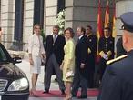 Los Reyes y sus hijas acaban de llegar al Congreso de los Diputados. Han sido recibidos a pie de coche por el presidente del Gobierno, Mariano Rajoy, y por el Jefe de Estado Mayor de la Defensa. El himno y 21 salvas de honor han recibido a los nuevos Reyes. Miembros de los tres ejércitos y de la Guardia Civil han rendido los honores al nuevo Rey.