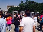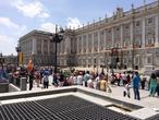 13.39: jaime g. moraEste es el aspecto que presenta ahora la Plaza de Oriente. Hay quien se protege del calor con sombreros y abanicos.