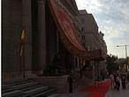 Así está la entrada del Congreso . La Puerta de los Leones está perfectamente decorada para un día tan especial como este.