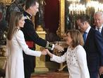 Los Reyes saludan a los cerca de 2.000 invitados, entre los que se ha querido contar con la representación de diversos miembros de la sociedad española. Empresarios y representantes de los sindicatos, miembros relevantes de la sociedad civil y personalidades de la Cultura y el deporte irán saludando a Felipe VI y Doña Letizia.